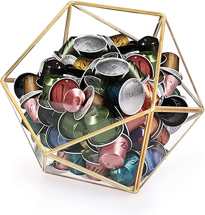 This geometric glass box is not just designed for coffee pods, it’s also great for tea bags, sugar packets, sweeteners, creamer and snacks.