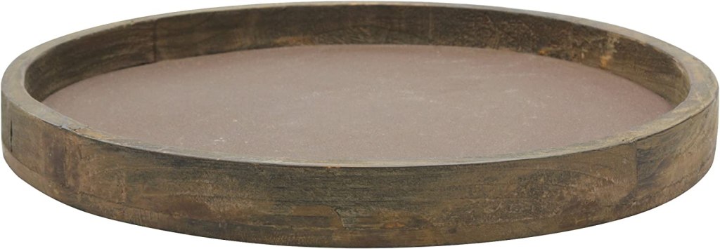 This tray is under $20, but it’s a versatile piece that can be used for storage or display. You can use it on your kitchen countertop, or style it on an ottoman with candles, pumpkins, and fall stems.