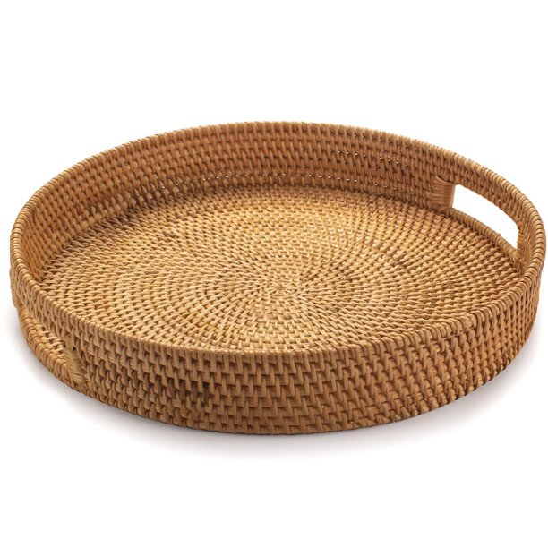 This rattan serving tray is woven from Water Hyacinth, a sustainable material that’s naturally resistant to mold and mildew. Use it on an ottoman, coffee table or as a kitchen island accessory. Or use it as you would any other serving tray: to serve food.